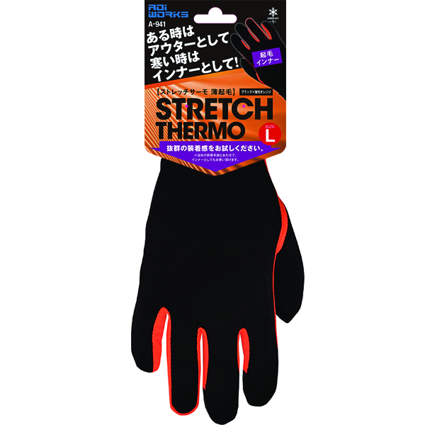ストレッチサーモ薄起毛 ブラック×蛍光オレンジ A-941