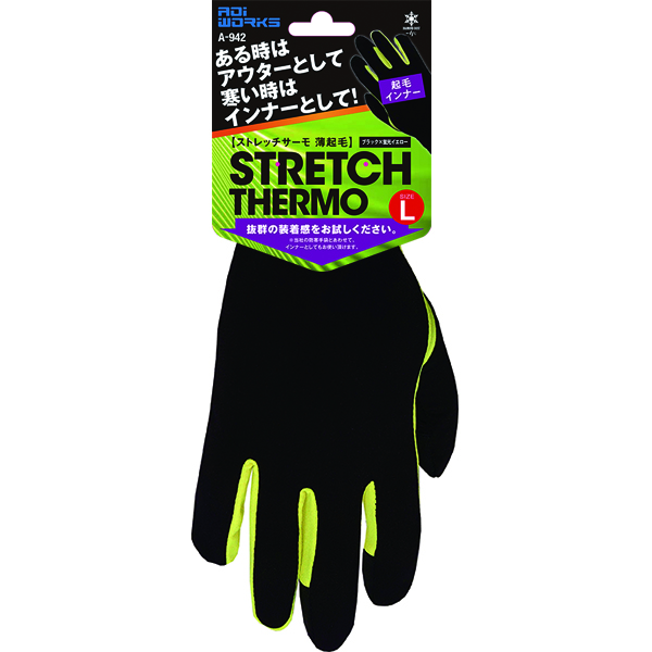 ストレッチサーモ薄起毛 ブラック×蛍光イエロー A-942