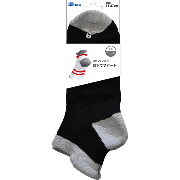 サポートソックス 先丸 ショート丈 ブラック A-423