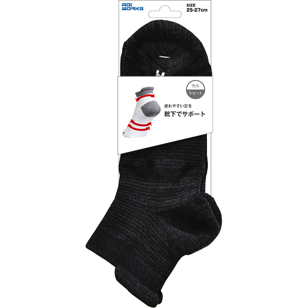 サポートソックス 先丸 ショート丈 杢ブラック A-425