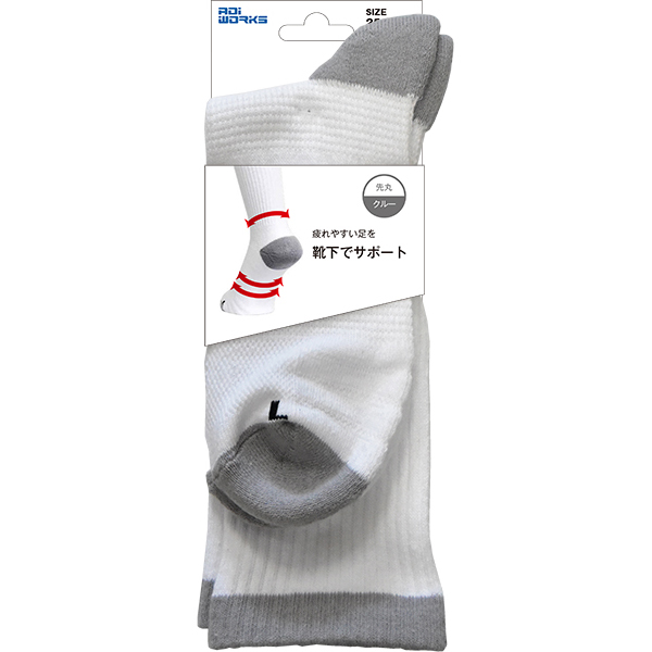 サポートソックス 先丸 クルー丈 ホワイト A-426