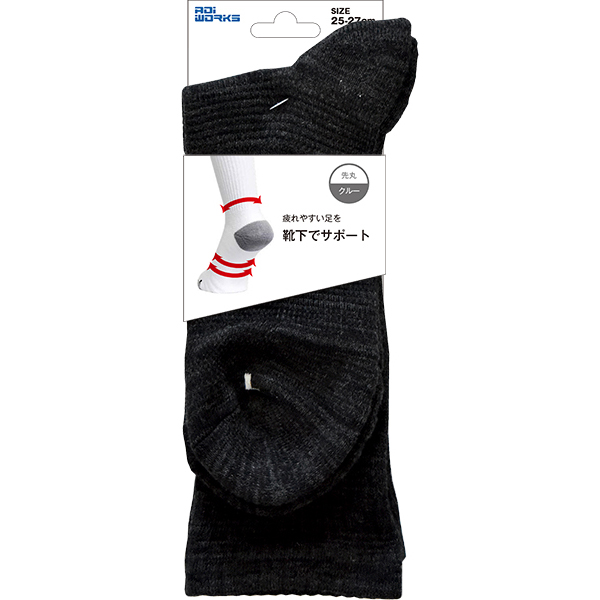 サポートソックス 先丸 クルー丈 杢ブラック A-430