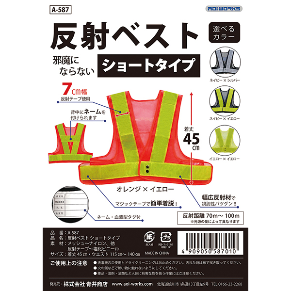 反射ベスト ショート丈 オレンジ×イエロー A-587